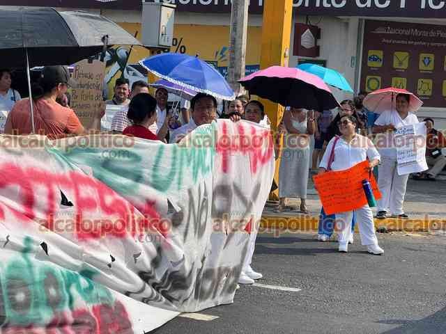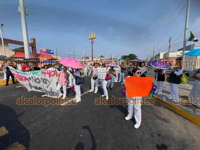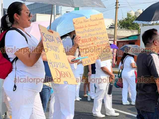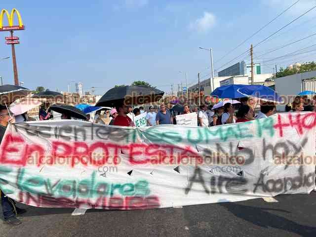 Veracruz, Ver., 10 de junio de 2024.- Nuevamente este lunes personal de Salud de la Unidad Médica de Alta Especialidad número 14 del IMSS bloqueó la avenida Cuauhtémoc por varios minutos para exigir la rehabilitación de los elevadores y aire acondicionado.