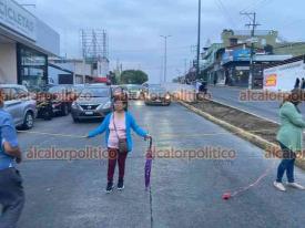 Xalapa, Ver., 10 de junio de 2024.- La tarde de este lunes, vecinos bloquearon la avenida 20 de Noviembre, cerca de CAXA, por la falta de agua desde hace un mes.