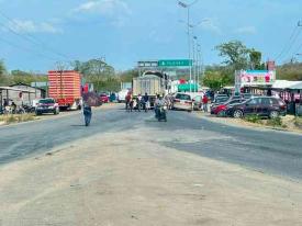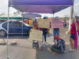 Tempoal, Ver., 13 de junio de 2024.- Cumple más de 24 horas el bloqueo en la carretera hacia Tampico. Pobladores demandan que llegue personal de CONAGUA para atender la sequía en el río Calabozo y el desabasto de agua en la zona. Las únicas vías alternas son la ruta por Naranjos y la autopista.