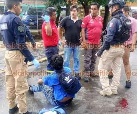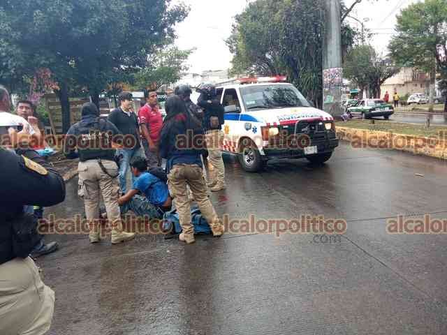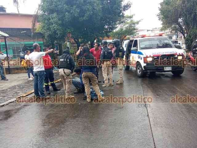 Xalapa, Ver., 14 de junio de 2024.- Un sujeto que presuntamente pretendía cometer un asalto en la avenida Ferrocarril Interoceánico, de la colonia 7 de Noviembre, fue golpeado por la presunta víctima y algunos testigos de los hechos, al lugar arribaron paramédicos para atender al sospechoso y entregarlo a elementos de seguridad para trasladarlo al cuartel de San José.