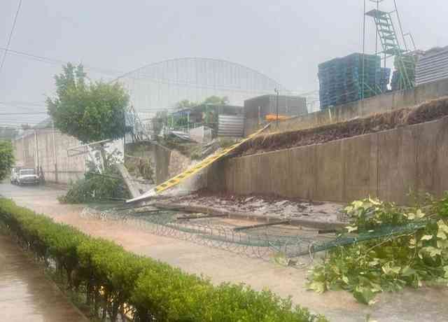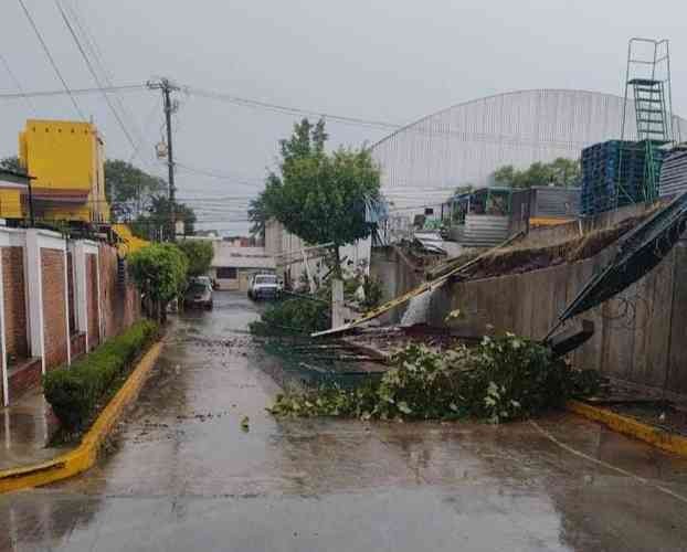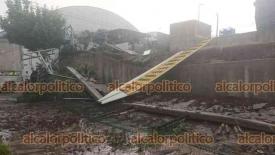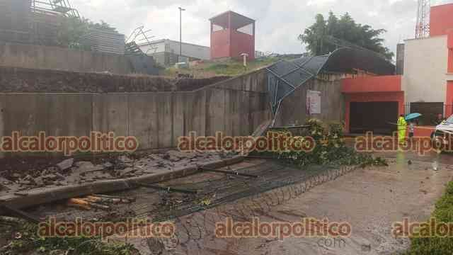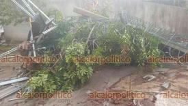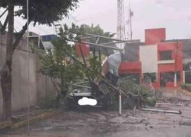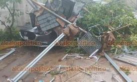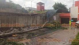 Emiliano Zapata, Ver., 16 de junio de 2024.- En la calle Ficus de Las Trancas, detrás de la tienda Bodega Aurrerá, colapsó una barda sobre un automóvil, la tarde de este domingo.