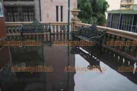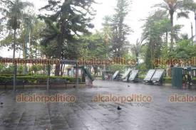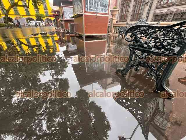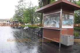 Xalapa, Ver., 20 de junio de 2024.- Este jueves, algunos vendedores del parque Juárez optaron por no abrir. Asimismo, una parte de este sitio que da a la calle Zaragoza se anegó tras las lluvias.