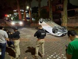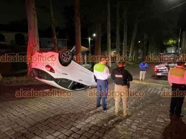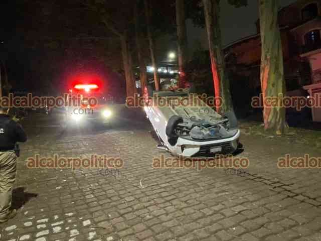 Xalapa, Ver., 17 de julio de 2024.- Un vehículo volcó al chocar contra el camellón de la calle Paseo de las Ánimas. La conductora refiere que perdió el control cuando se incorporaba desde paseo de Los Fresnos; peritos de Tránsito del Estado tomaron conocimiento del percance.