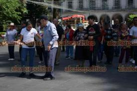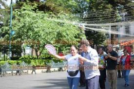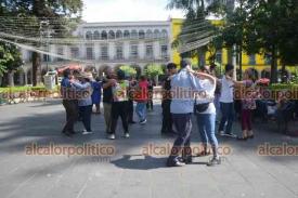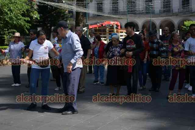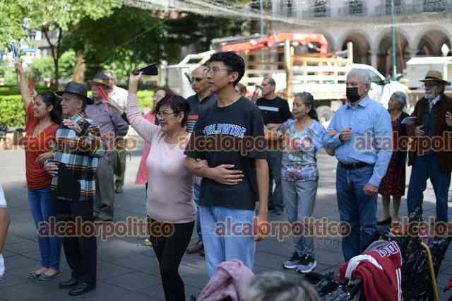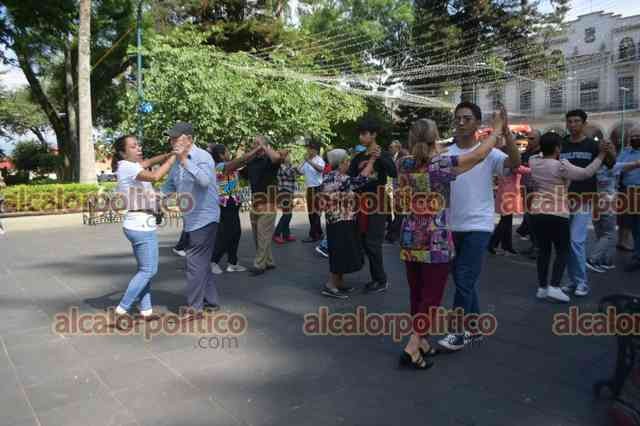 Xalapa, Ver., 18 de julio de 2024.- Parejas de baile se preparan para la rutina masiva que se llevará a cabo mañana viernes en el parque Juárez, como parte del Festival Nacional “Danzoneando”.