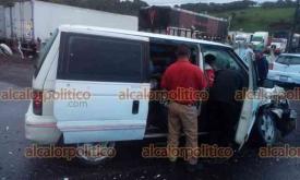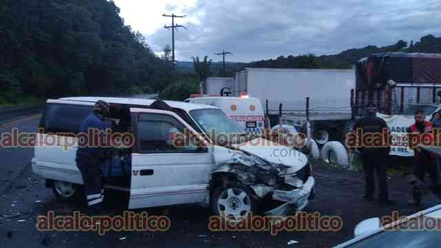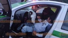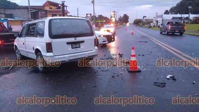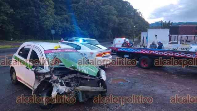 Xalapa, Ver., 21 de julio de 2024.- Aparatoso accidente se registró la mañana de este domingo sobre la carretera Xalapa-Perote, a la altura de El Rosario. Una camioneta blanca le realizó corte de circulación a taxi; paramédicos atendieron a los involucrados.