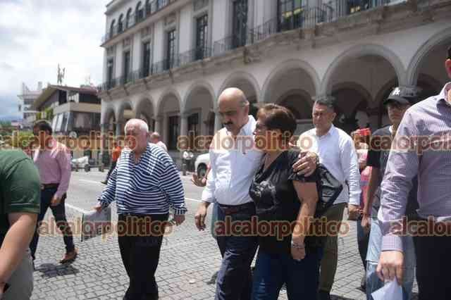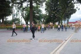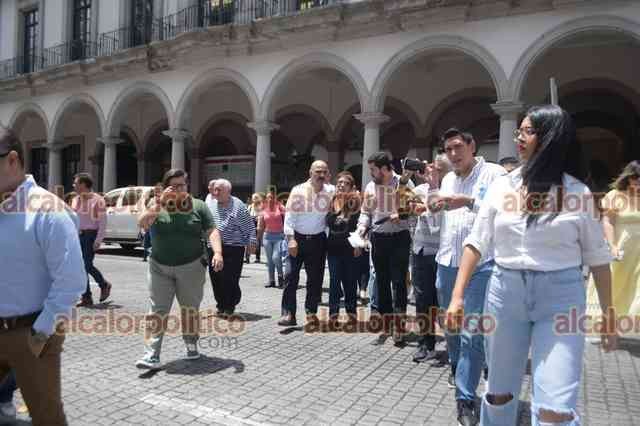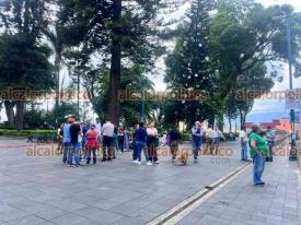 Xalapa, Ver., 5 de agosto de 2024.- Personal del Ayuntamiento evacuó el Palacio Municipal ante el temblor ocurrido esta tarde, reuniéndose en el parque Juárez.