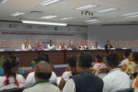 Xalapa, Ver., 12 de agosto de 2024.- La magistrada presidenta Lisbeth Jiménez, el senador electo Manuel Huerta, la directora del Instituto Veracruzano de Asuntos Indígenas, María Luisa Santes, entre otros invitados, asistieron a la conmemoración del Día Internacional de los Pueblos Indígenas, en la sede del Poder Judicial.