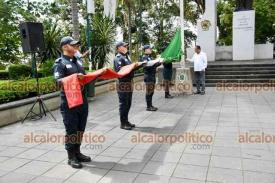 Xalapa, Ver., 13 de agosto de 2024.- Este martes se llevó a cabo el izamiento de bandera en conmemoración del 110 aniversario de la firma de los Tratados de Teoloyucan. La ceremonia fue encabezada por el subsecretario de Gobierno, Ulises Montes.