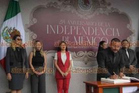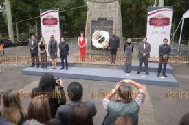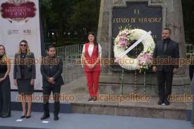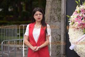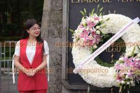 Xalapa, Ver., 9 de septiembre de 2024.- La secretaria del Trabajo, Dorheny García, encabezó la guardia de honor de la dependencia ante el monumento a Miguel Hidalgo.