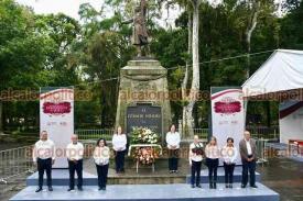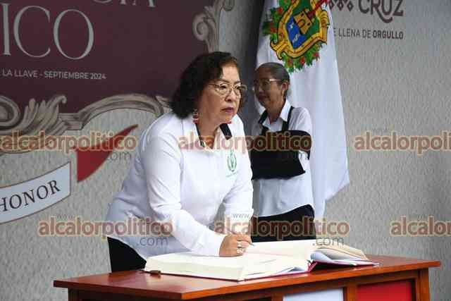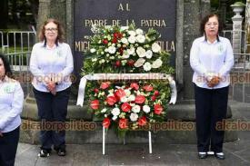 Xalapa, Ver., 10 de septiembre de 2024.- La secretaria general del Sindicato Estatal de Trabajadores al servicio del Poder Judicial, María del Rocío Tinajero, rindió guardia de honor ante el monumento de Miguel Hidalgo.