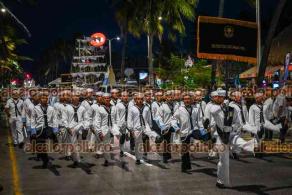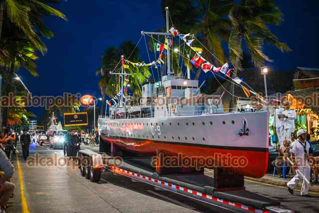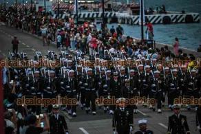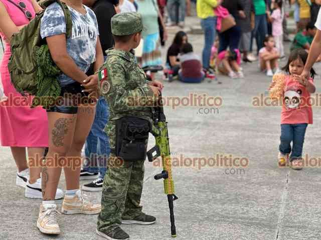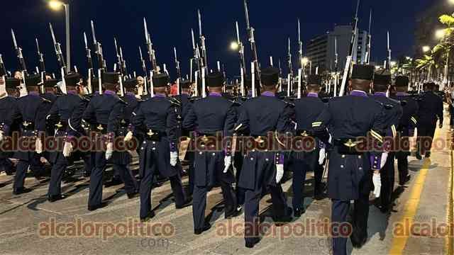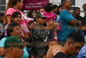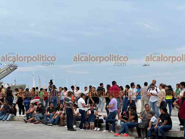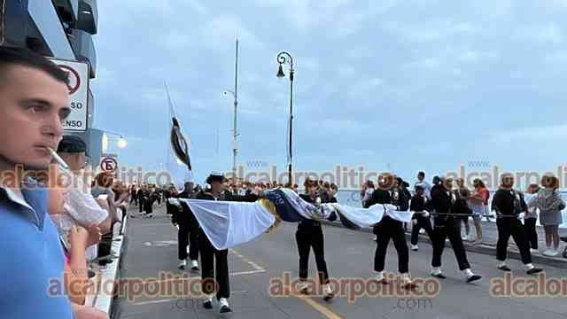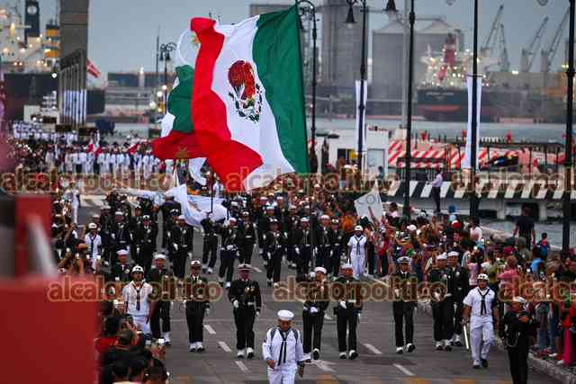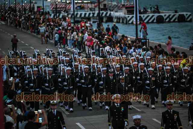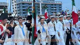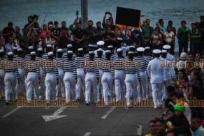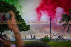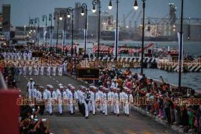 Veracruz, Ver., 4 de octubre de 2024.- En el despliegue se mostró la bandera del ejército Trigarante, buques a escala Guanajuato, Tabasco y del velero Cuauhtémoc y se representaron a personajes que participaron en la Constitución de 1824; hubo demostración aérea con helicópteros MI17 y aviones.