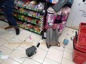 Xalapa, Ver., 5 de octubre de 2024.- La noche del viernes, 2 ladrones sustrajeron la caja registradora de la tienda FASTI ubicada en El Sumidero y huyeron. Empleado resultó herido con arma blanca y fue trasladado a un hospital.