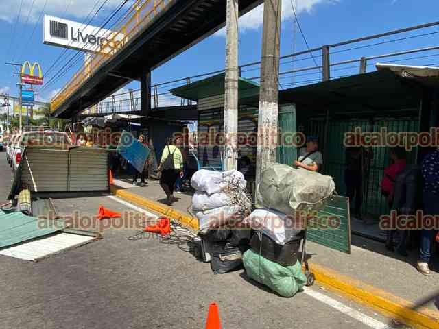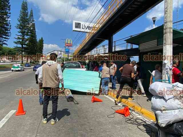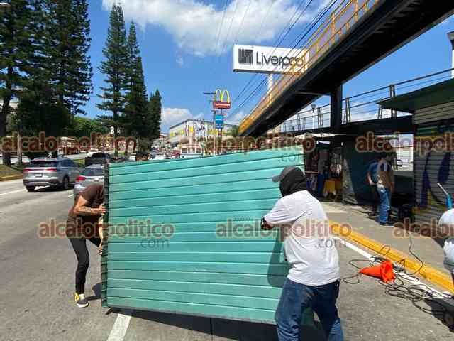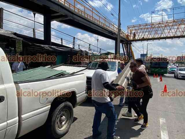 Xalapa, Ver., 11 de octubre de 2024.- Personal de Comercio del Ayuntamiento retiró una caseta ubicada en la parte baja del puente peatonal de Plaza Crystal. No contaba con los permisos correspondientes y estaba abandonada.