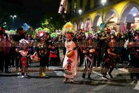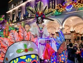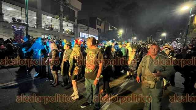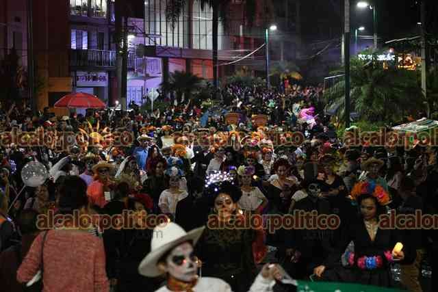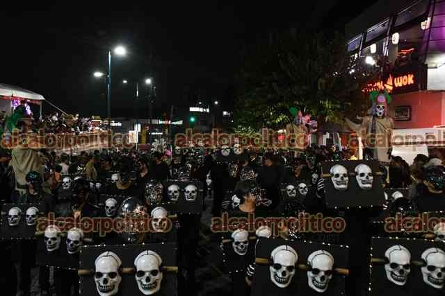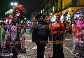 Xalapa, Ver., 31 de octubre de 2024.- La noche de este jueves arrancó el gran desfile de catrinas en el Centro de la capital.