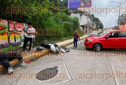 Xalapa, Ver., 5 de noviembre de 2024.- Motociclista resultó lesionado al chocar contra un vehículo que le hizo corte de circulación en la avenida Rébsamen. Al lugar se movilizaron paramédicos.