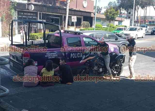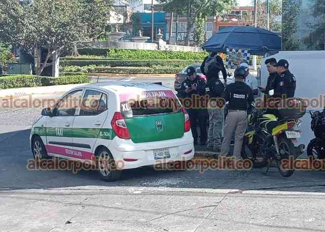Xalapa, Ver., 9 de noviembre de 2024.- Por un conflicto vial, taxista y motociclista se liaron a golpes en la esquina de calle Azueta y avenida Ávila Camacho. Paramédicos atendieron al ruletero, que se llevó la peor parte. Al lugar acudieron policías municipales.