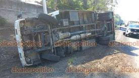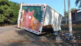 San Rafael, Ver., 6 de diciembre de 2024.- Camión de cervecera volcó a la altura de la comunidad de La Poza. Según se informó, el conductor iba a exceso de velocidad. No hubo lesionados.