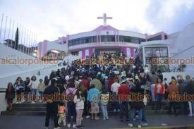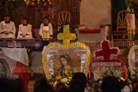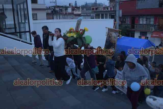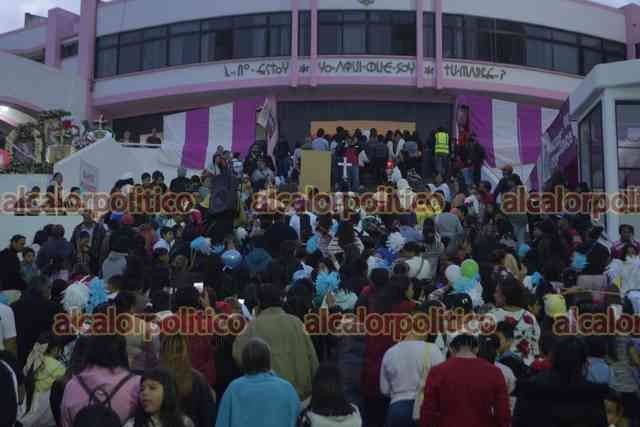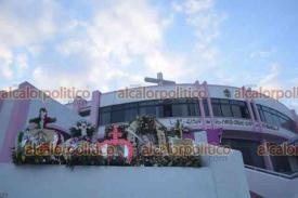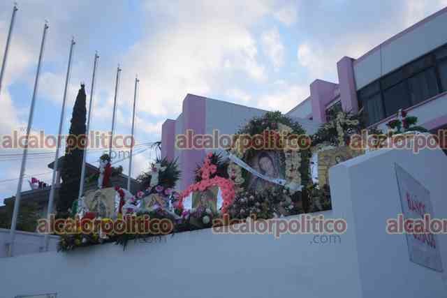 Xalapa, Ver., 7 de diciembre de 2024.- Previo a la Fiesta de la Virgen de Guadalupe, la entrada a la basílica menor en El Dique ya se encuentra lista recibiendo a los peregrinos que llegan a dejar ramos de flores y a escuchar la misa.