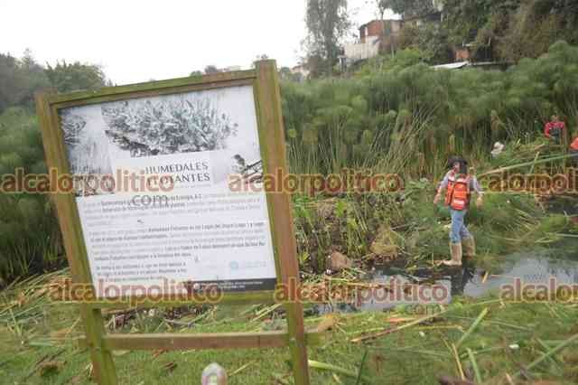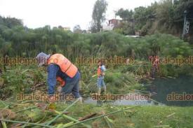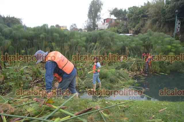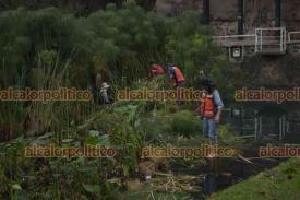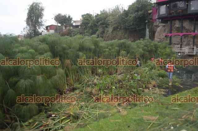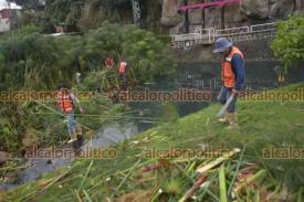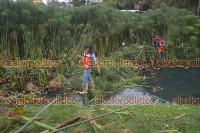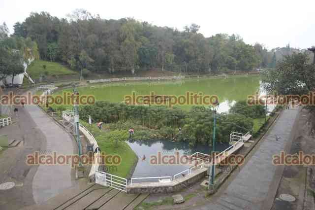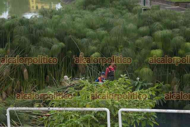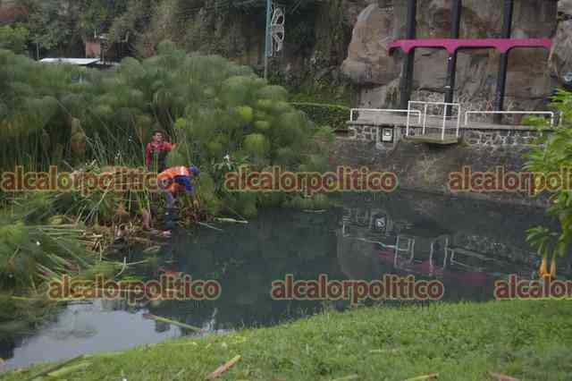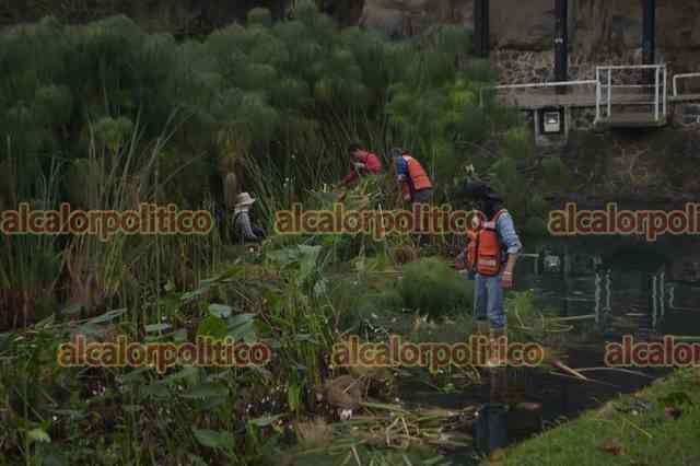 Xalapa, Ver., 13 de enero de 2025.- Trabajadores de Medio Ambiente podan las plantas en Los Lagos. El agua continúa ligeramente turbia.