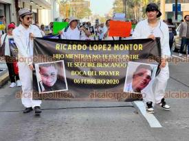 Veracruz, Ver., 6 de febrero de 2025.- Familiares de Ricardo López Montor, acompañados de activistas, marcharon por el Centro al cumplirse 5 años de la desaparición del joven.