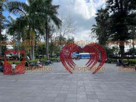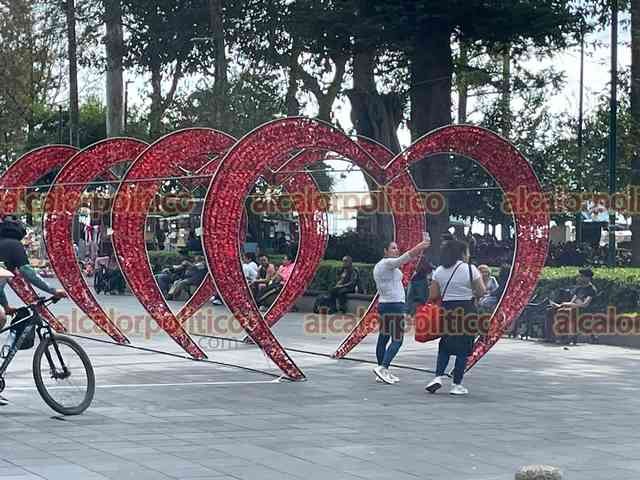 Xalapa, Ver., 8 de febrero de 2025.- Por el Día de San Valentín, el Ayuntamiento instaló decoraciones como motivo del amor y la amistad en el parque Juárez.