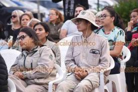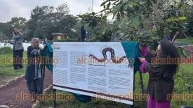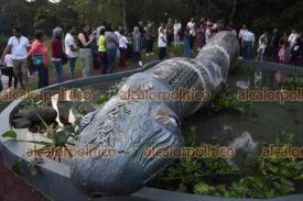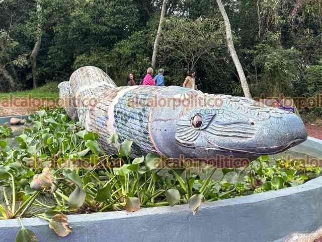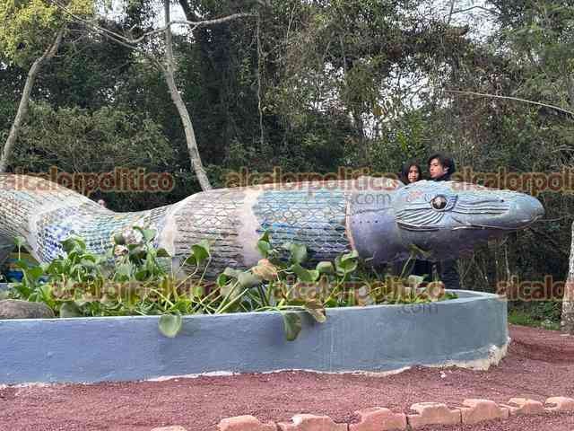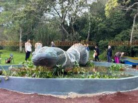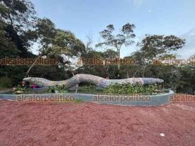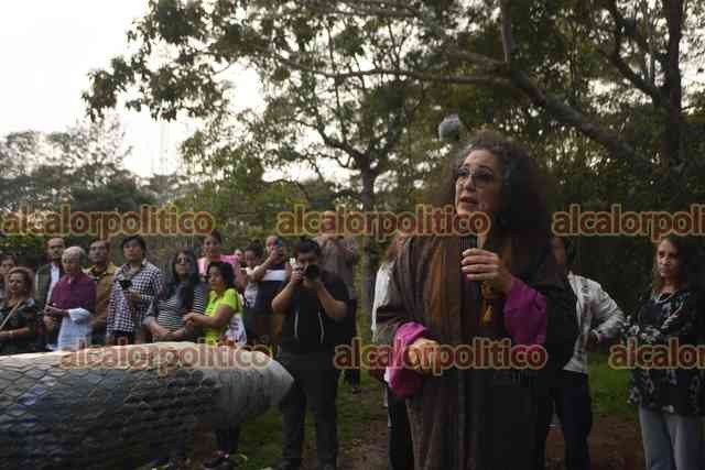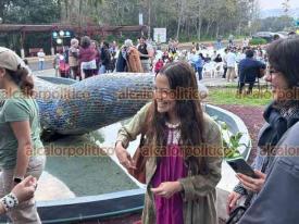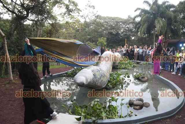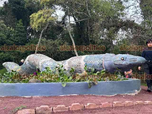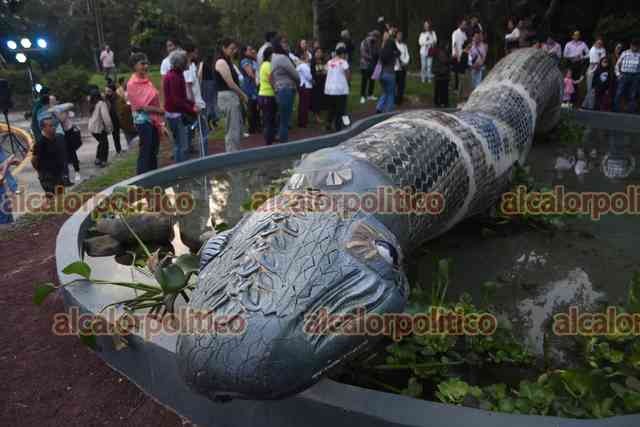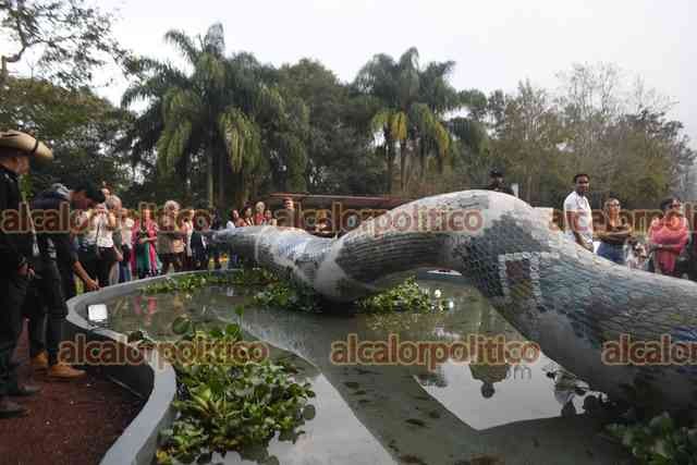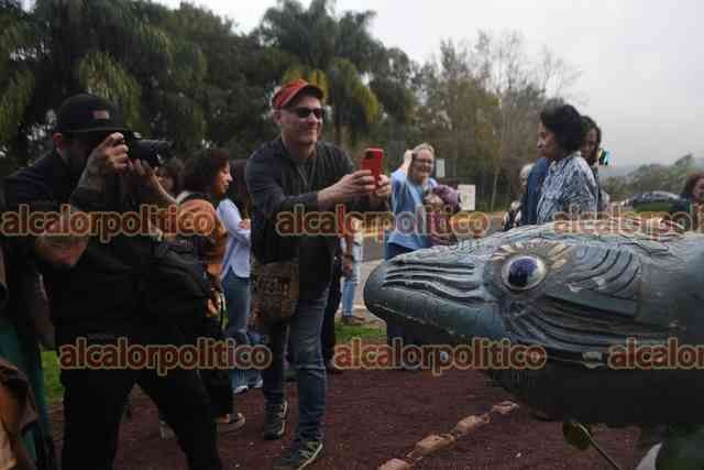 Xalapa, Ver., 8 de febrero de 2025.- Con la asistencia de la cantante Natalia Lafourcade, quien creció en Coatepec, este sábado fue develada la restauración de la serpiente “Coatl”, escultura del Parque Natura, destrozada el año pasado.