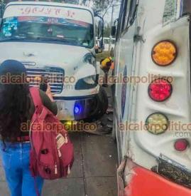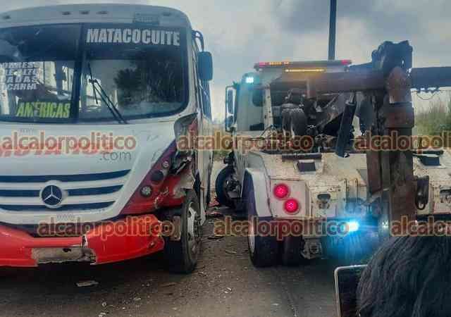 Veracruz, Ver., 10 de febrero de 2025.- Dos pasajeras resultaron lesionadas al chocar el autobús de la ruta Matacocuite contra una grúa en la carretera a la localidad de Dos Lomas.