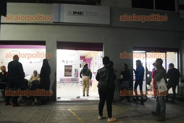 Xalapa, Ver., 10 febrero de 2025.- Hasta el último minuto de este lunes, seguían personas formadas para realizar trámites en el módulo del INE de Ávila Camacho.