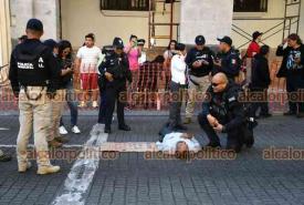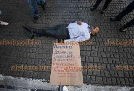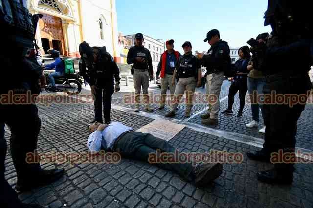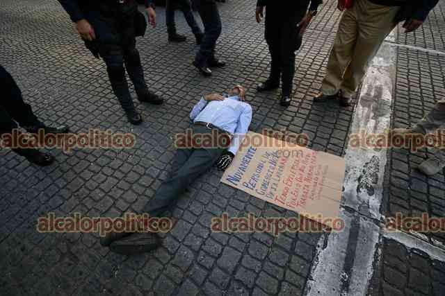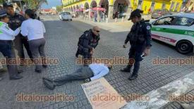 Xalapa, Ver., 12 de febrero de 2025.- El “escritor de poemas” Gerardo Romero, quien dice tener epilepsia y que por ello “no puede trabajar normalmente”, se tiró en la calle Enríquez para denunciar que personal de Comercio no lo deja trabajar. Según las autoridades, el banco donde se coloca a escribir poemas fue el que pidió que se retirara.
