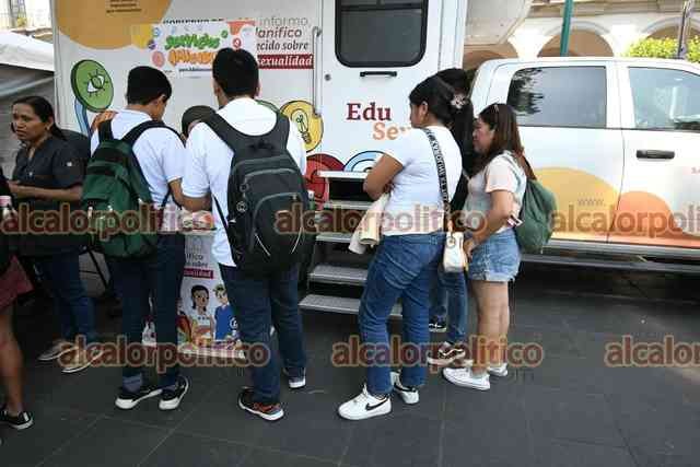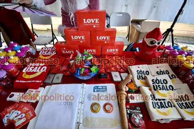 Xalapa, Ver., 13 de febrero de 2025.- Por el Día Internacional del Condón, se instalaron en el Parque Juárez módulos de información y orientación sexual, donde regalaron condones.