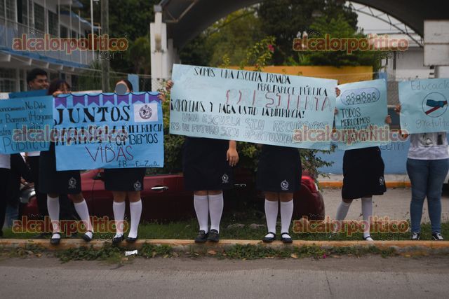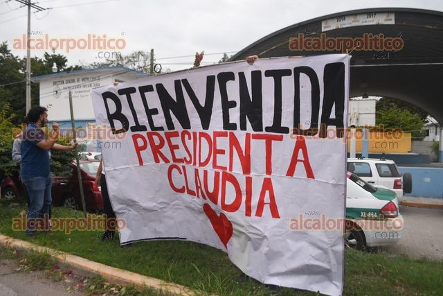 Emiliano Zapata, Ver., 14 de febrero de 2025.- Estudiantes de la escuela de bachilleres “Emiliano Zapata” esperaron el paso de la presidenta Claudia Sheinbaum para darle la bienvenida, pero también exponerle problemáticas de su escuela.