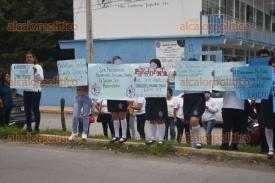 Protestan estudiantes de bachillerato ante el paso de la Presidenta en Emiliano Zapata
