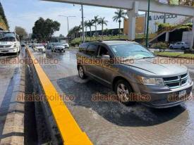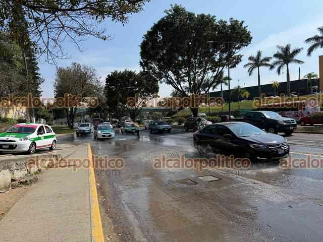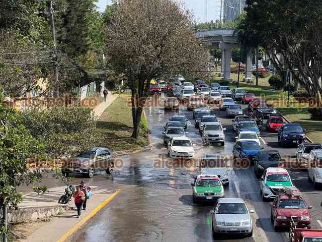 Xalapa, Ver., 15 de febrero de 2025.- Miles de litros de agua se desperdician en la avenida Lázaro Cárdenas, en el carril con dirección a Banderilla frente a la Secretaría de Educación. Hasta las 15:00 horas de este sábado la fuga no había sido solucionada por CMAS.
