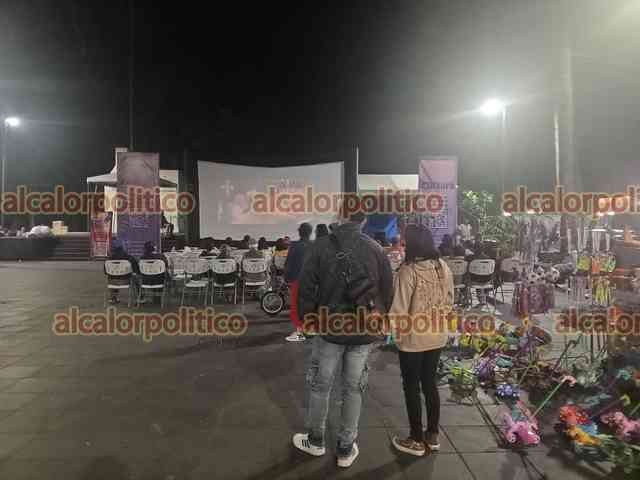 Xalapa, Ver., 15 de febrero del 2025.- En el parque Juárez, este sábado terminó con una noche de cine al aire libre donde se proyectó la película "Yo antes de ti", en el marco de la temporada de amor y amistad que caracteriza a febrero, junto a la expoventa de flores.