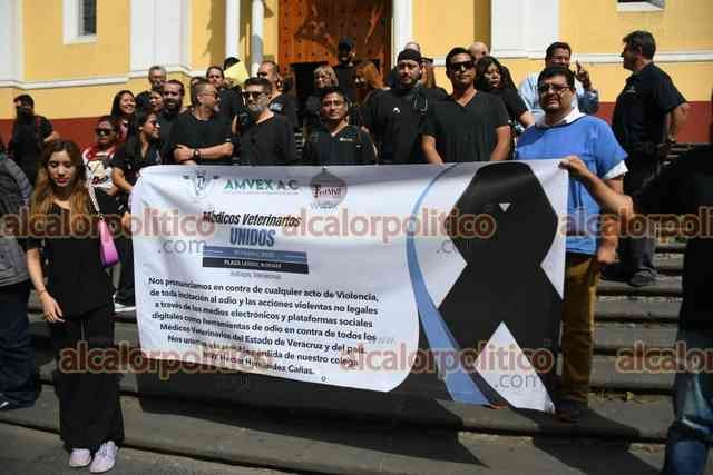 Xalapa, Ver., 18 de febrero de 2025.- Médicos veterinarios de la Capital se sumaron a la protesta nacional para exigir justicia para su compañero Héctor Hernández, asesinado en el Estado de México por los dueños de una perra Yorkshire que murió por complicaciones tras ser operada.