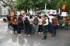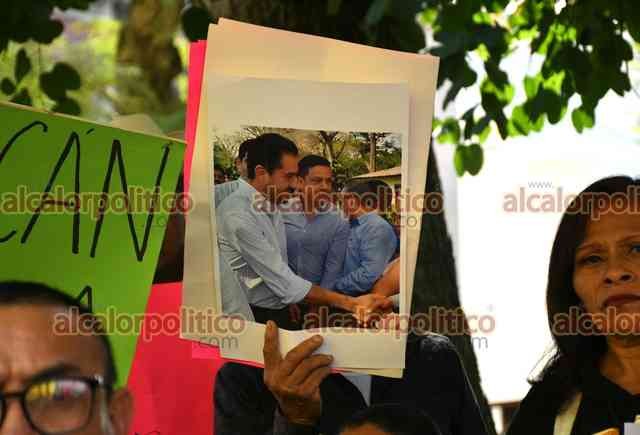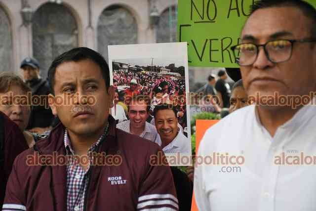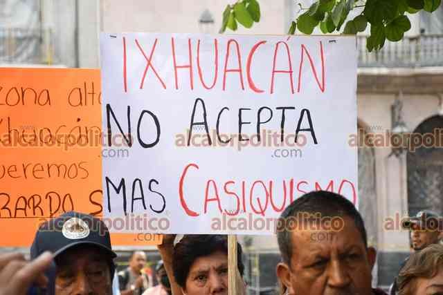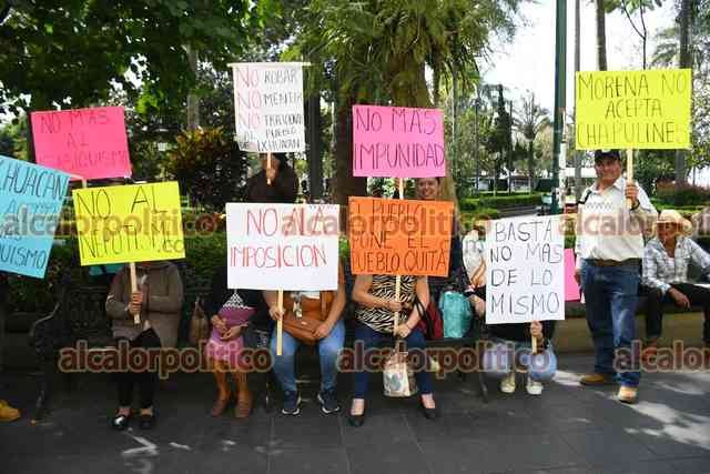 Xalapa, Ver., 18 de febrero de 2025.- Demandando un alto al cacicazgo, aspirantes a la candidatura de MORENA por la Alcaldía de Ixhuacán de los Reyes se manifestaron para exigir que no se imponga al exalcalde panista Everardo Soto como candidato en el municipio.