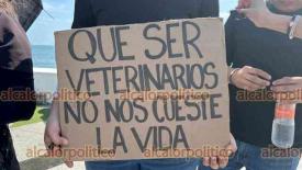 Boca del Río, Ver., 18 de febrero de 2025.- “Exigimos que la profesión se dignifique, que se pare la difamación en redes sociales”, demandaron médicos veterinarios de la conurbación que se sumaron a la protesta nacional para exigir justicia para Héctor Hernández.