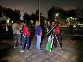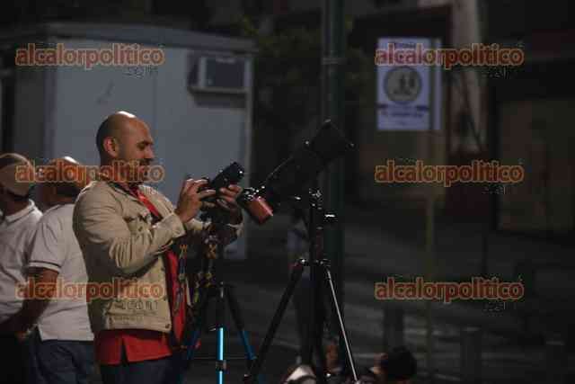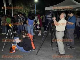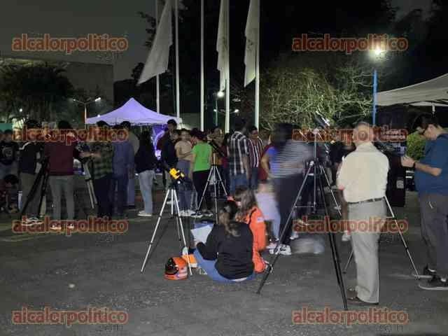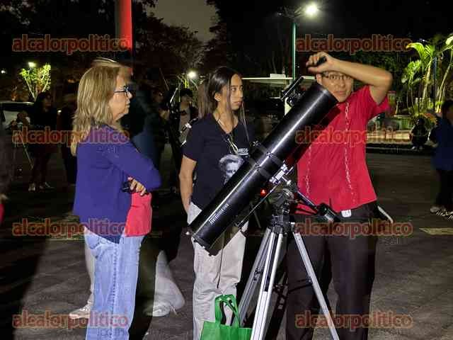 Xalapa, Ver., 13 de marzo de 2025.- Xalapeños se dieron cita en la explanada del Museo Kaná, y en la plaza Lerdo para observar el eclipse lunar con los telescopios de la Sociedad Astronómica del Estado de Veracruz