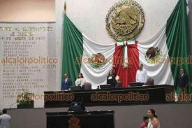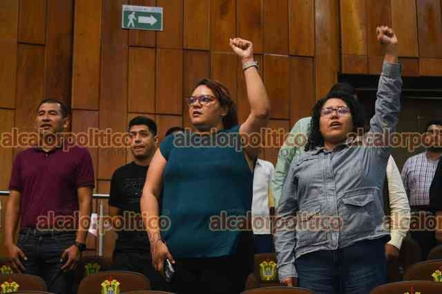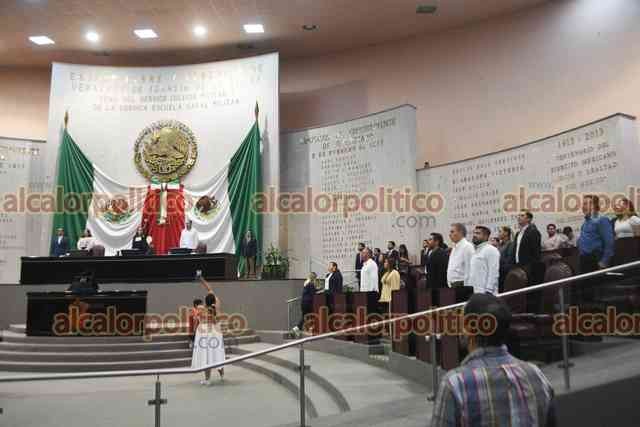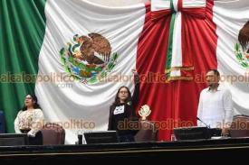 Xalapa, Ver., 14 de marzo de 2025.- Pese a la polémica, la diputada Tanya Carola Viveros volvió a alzar el puño durante el himno nacional, sin embargo, en esta ocasión sus compañeros no lo hicieron, pero fue apoyada por dos personas del público.