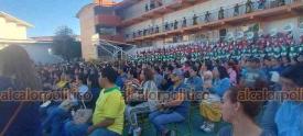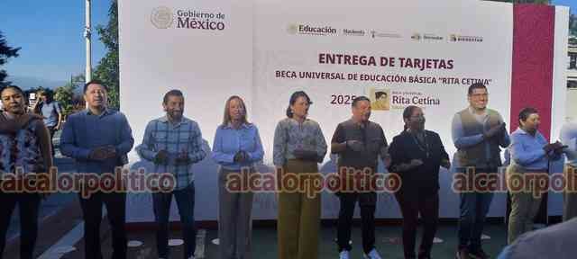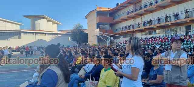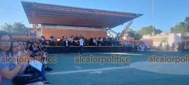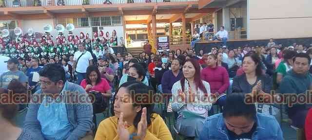 Xalapa, Ver., 15 de marzo de 2025.- Al amanecer de este sábado, el delegado del Bienestar, Javier Gómez Cazarín y la titular de la SEV, Claudia Tello Espinosa, presidieron entrega de becas “Rita Cetina” en la Secundaria Técnica 3. Asistieron padres de familia y directivos del plantel.