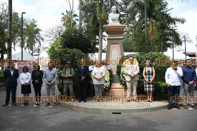 Xalapa, Ver., 17 de marzo de 2025.- El director de la Benemérita Escuela Normal Veracruzana, Gerardo Gómez Salas, y representantes de Gobierno encabezaron una guardia de honor ante el busto de Juan de la Luz Enríquez, en el parque Juárez, por su aniversario luctuoso.