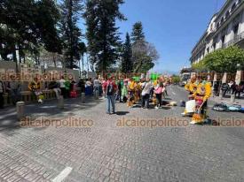 Xalapa, Ver., 19 de marzo de 2025.- Antorchistas se manifestaron en el Centro para demandar a la Alcaldía ayuda con el traslado a un festival cultural en Tecomatlán, Puebla. Autoridades les aclararon que no se apoya a este tipo de organizaciones.