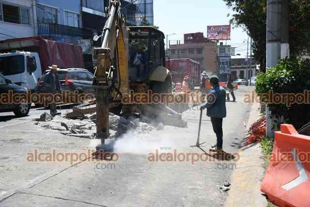 Xalapa, Ver., 19 de marzo de 2025.- Como se había anunciado, inició la rehabilitación de la avenida 20 de Noviembre, entre Manuel C. Tello y Revolución. La reducción de carriles complicó el tráfico en la zona.