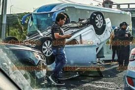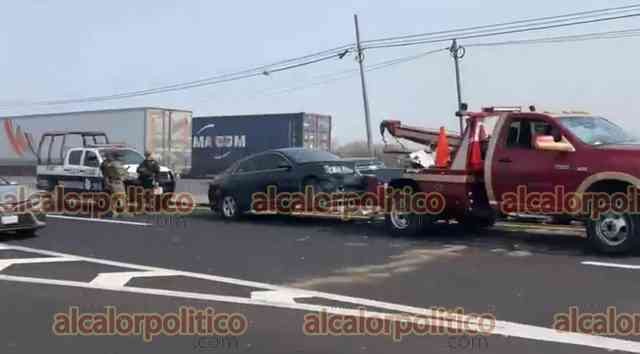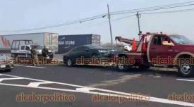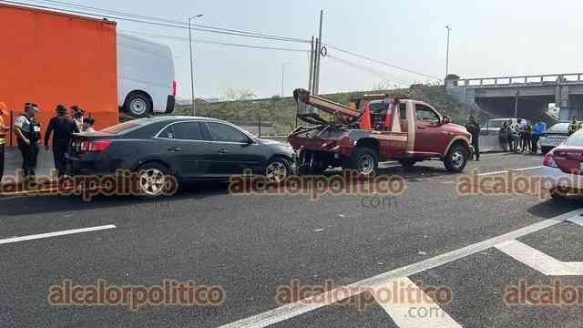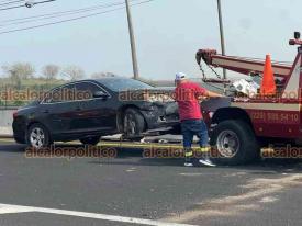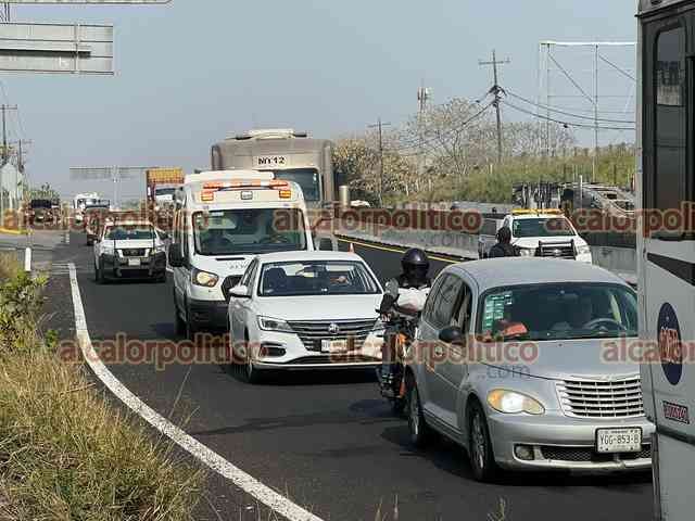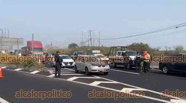 Veracruz, Ver., 20 de marzo de 2025.- En la autopista Veracruz-Cardel, a la altura de Geo Los Pinos, auto volcó en dirección al Puerto, lo que complicó la circulación vehicular. Poco después grúa retiró el vehículo accidentado para liberar carriles.