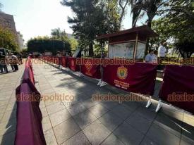 Xalapa, Ver., 21 de marzo de 2025.- En el parque Juárez se colocó una valla para el paso de la Gobernadora y demás funcionarios que participaron en la conmemoración del natalicio del “Benemérito de las Américas”.