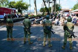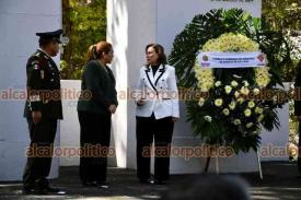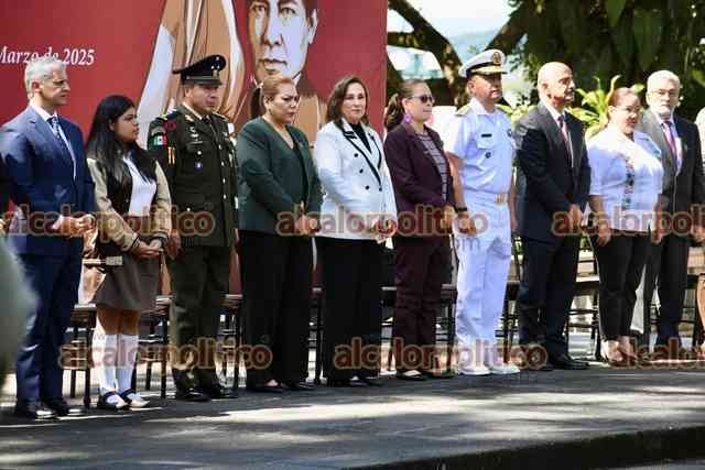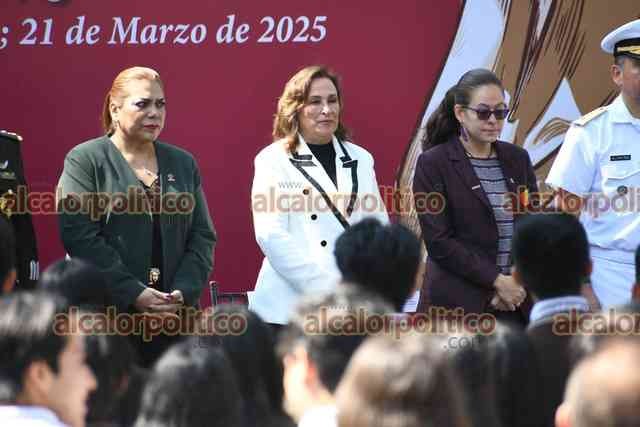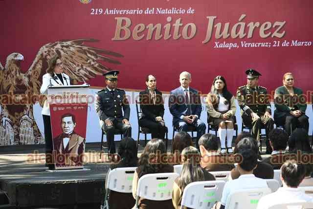 Xalapa, Ver., 21 de marzo de 2025.- La gobernadora Rocío Nahle encabezó la conmemoración del natalicio de Benito Juárez en el parque que lleva su nombre. La acompañaron las presidentas del Poder Legislativo, Tanya Carola Cházaro, del Poder Judicial, Aurelia Lisbeth Jiménez, el alcalde Alberto Islas, mandos militares, entre otros.