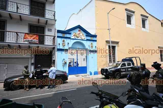 Veracruz, Ver., 25 de marzo de 2025.- Conato de bronca en las instalaciones de la Gran Logia Unida Mexicana, a donde llegaron elementos de SSP y la Armada. Según testigos, exmiembros intentaron asegurar el recinto colocando cadenas, lo que desató el pleito. No hubo detenidos pero la Logia procederá legalmente.