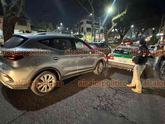 Xalapa, Ver., 25 de marzo de 2025.- Aunado al intenso tráfico en la zona de Araucarias por obras del ayuntamiento, esta tarde de martes una camioneta chocó contra un taxi, colapsando por completo el tráfico en las avenidas 20 de Noviembre, Lázaro Cárdenas y Araucarias.