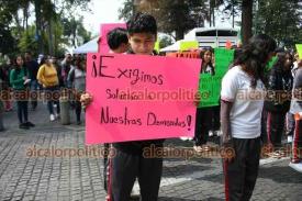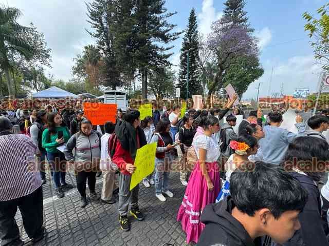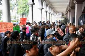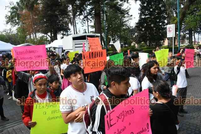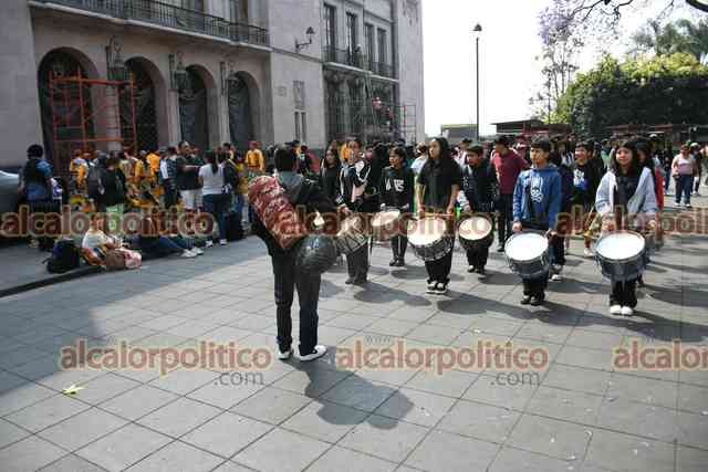 Xalapa, Ver., 26 de marzo de 2025.- Jóvenes integrantes del Movimiento Antorchista se volvieron a manifestar para pedirle a la Alcaldía autobuses para viajar a un festival cultural de la organización en Puebla.