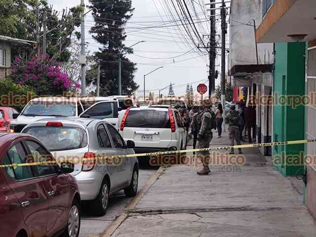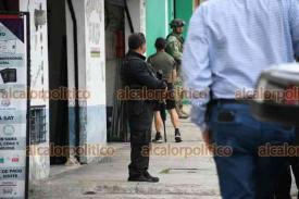 Xalapa, Ver., 26 de marzo de 2025.- Policía Ministerial, Ejército y Guardia Nacional catearon un negocio de copiadoras en la calle Jorge Serdán Norte, en la colonia Mirador, a una cuadra del Congreso del Estado.
